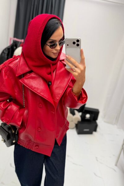 Kurtka La Milla z eko skóry ze stójką ceglasta