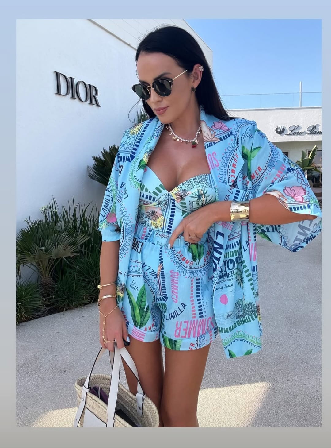Stylowe i kobiece body w letnim wydaniu, w odcieniu jasnego błękitu z kolorowym, wakacyjnym nadrukiem. Gorsetowy krój z usztywnianymi miseczkami pięknie podkreśla biust i talię. Idealne na lato – zarówno na plażę, jak i wieczorne wyjście. Noś je solo lub z dopasowaną narzutką, by stworzyć modny, spójny look.