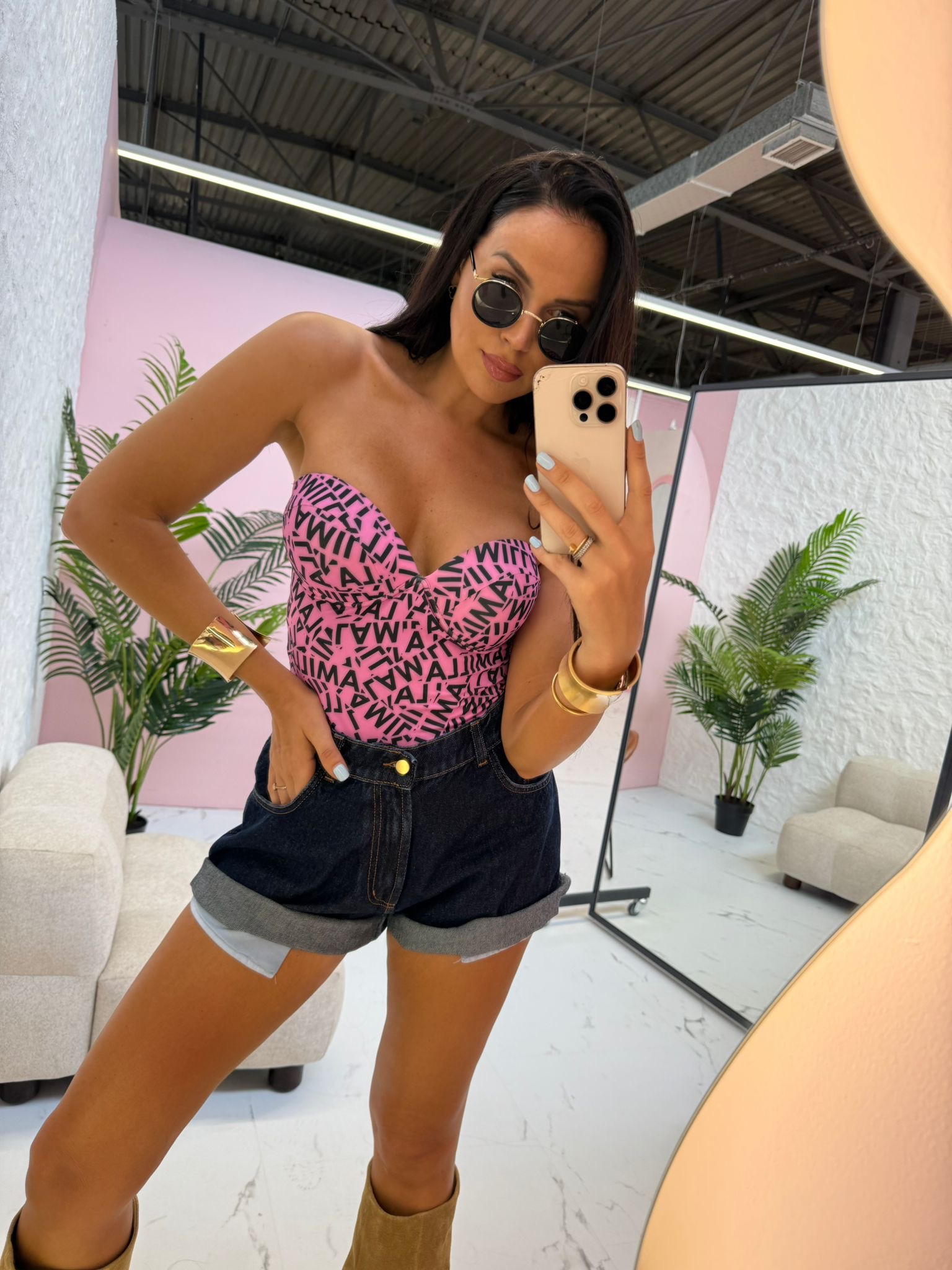 Stylowe body gorsetowe w kolorze różowym z efektownym logowaniem La Milla. Model podkreślający sylwetkę, idealny na plażę i wakacyjne stylizacje.