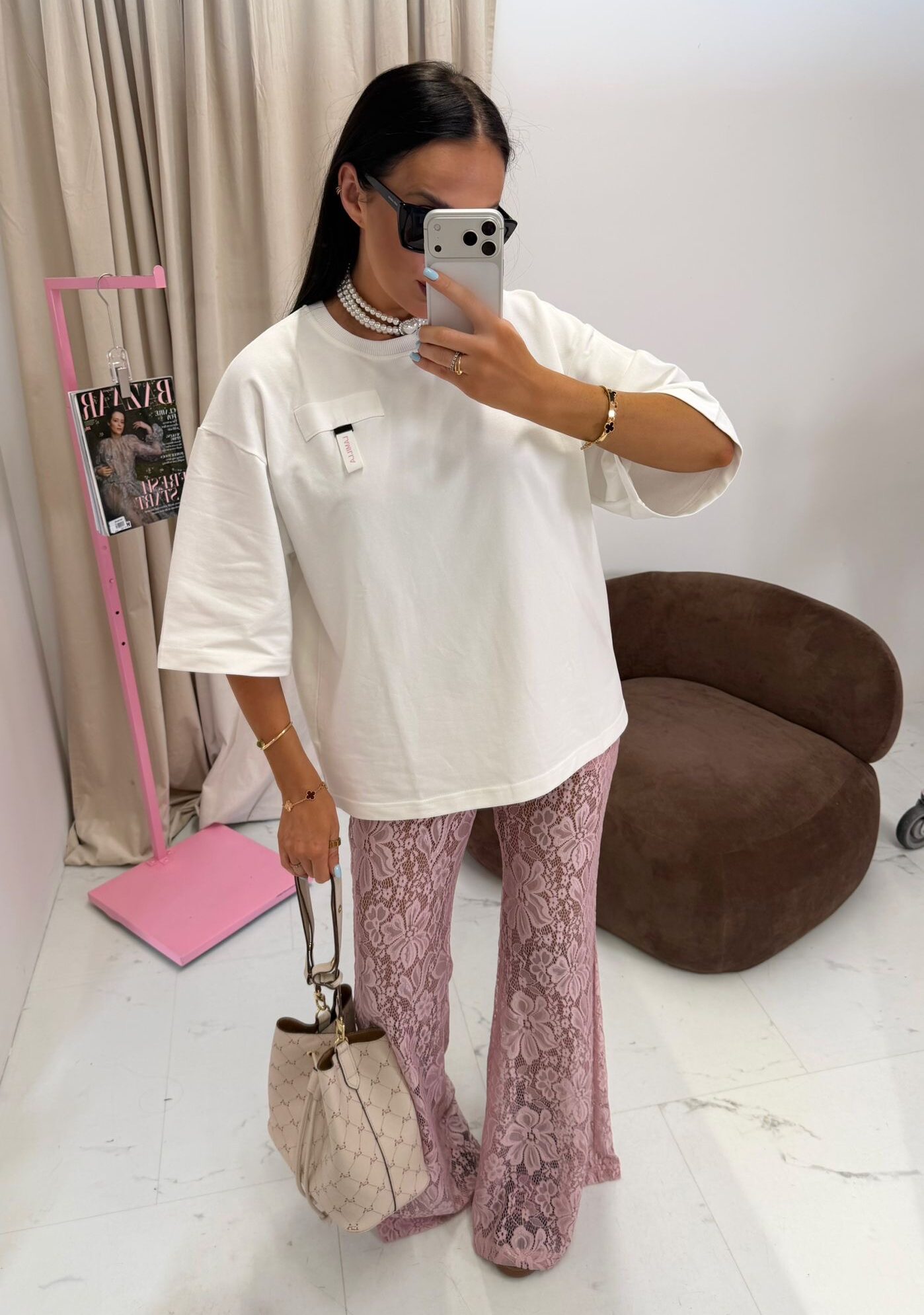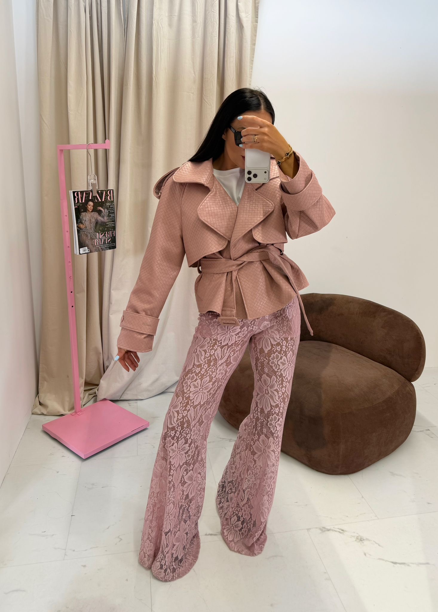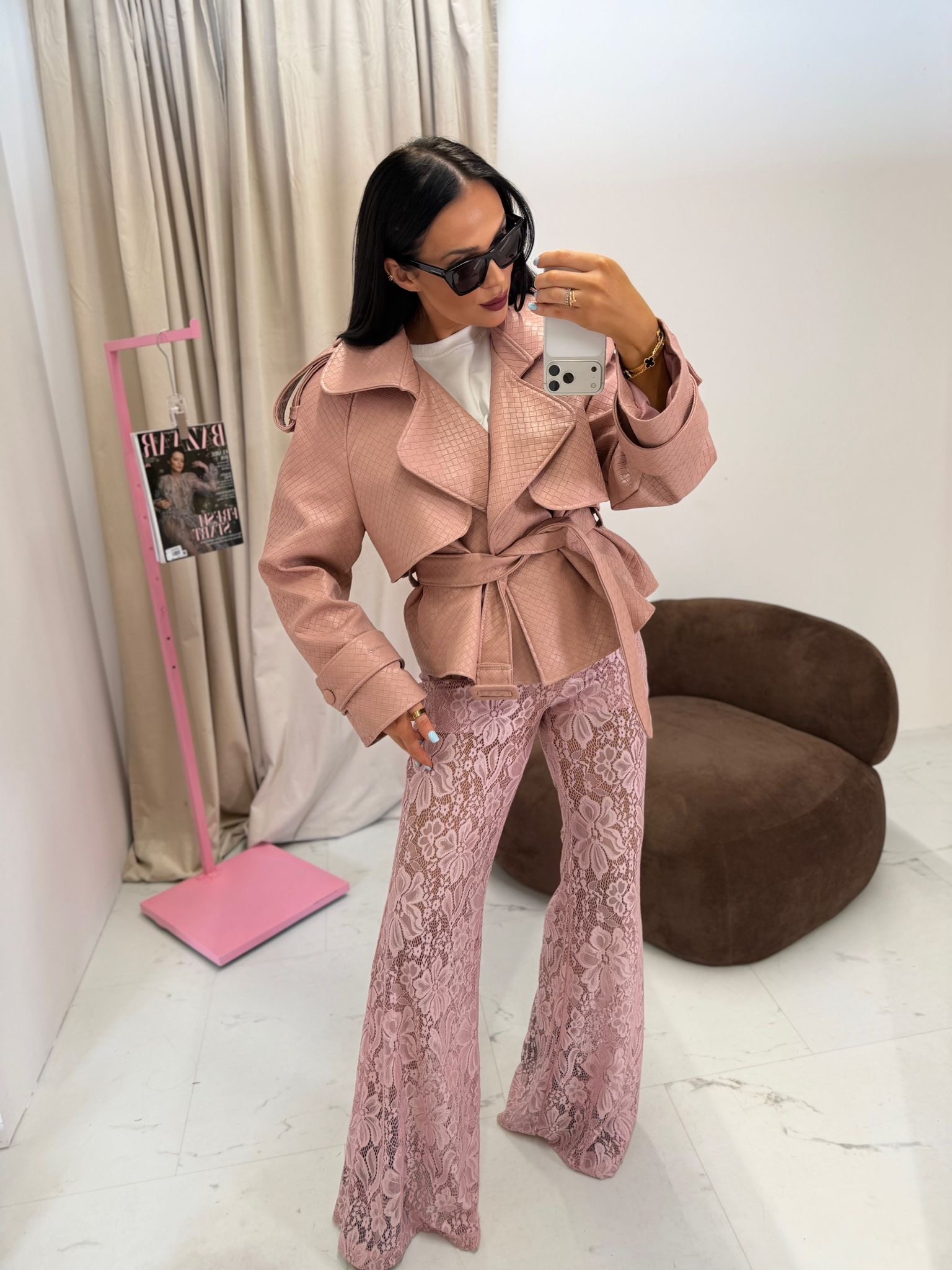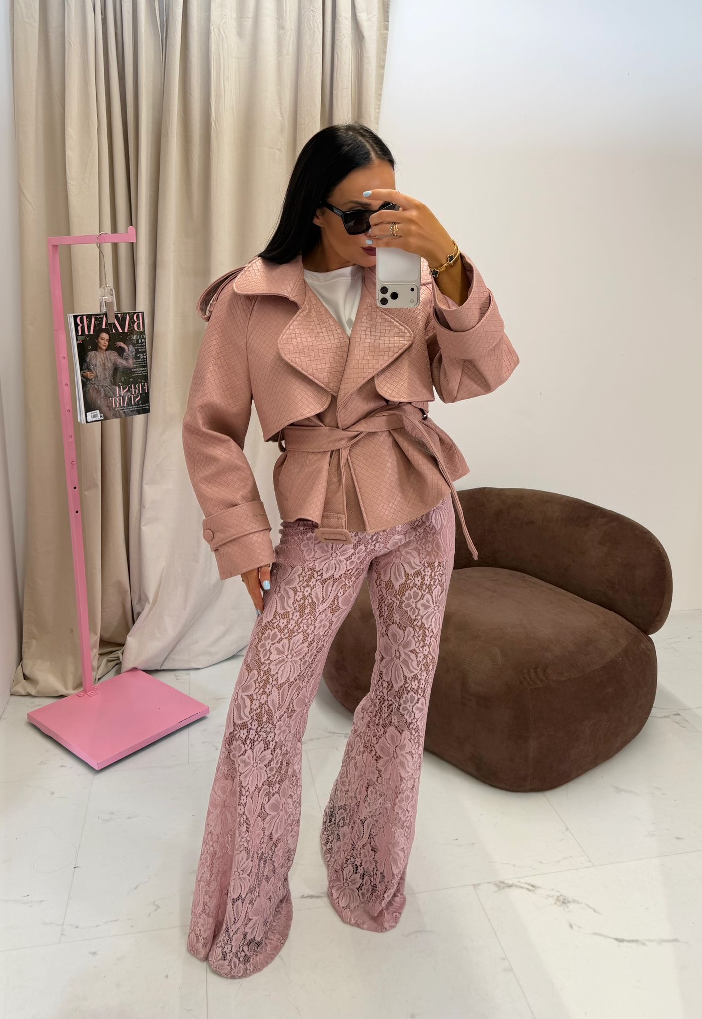 Koronkowe spodnie dzwony La Milla pudrowy róż