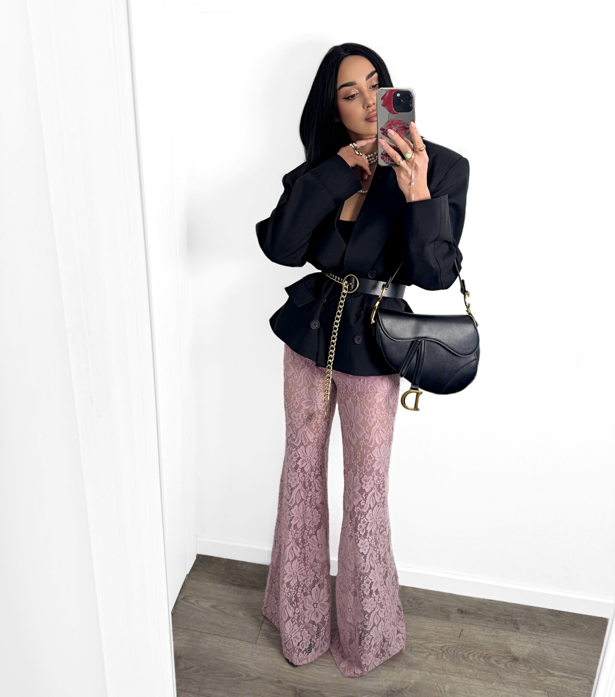 Koronkowe spodnie dzwony La Milla w kolorze pudrowego różu to wyjątkowo kobiecy element garderoby, który łączy elegancję z modnym stylem boho. Wykonane z delikatnej, ażurowej koronki, pięknie podkreślają sylwetkę, a rozszerzane nogawki typu dzwony dodają lekkości i efektownego charakteru.