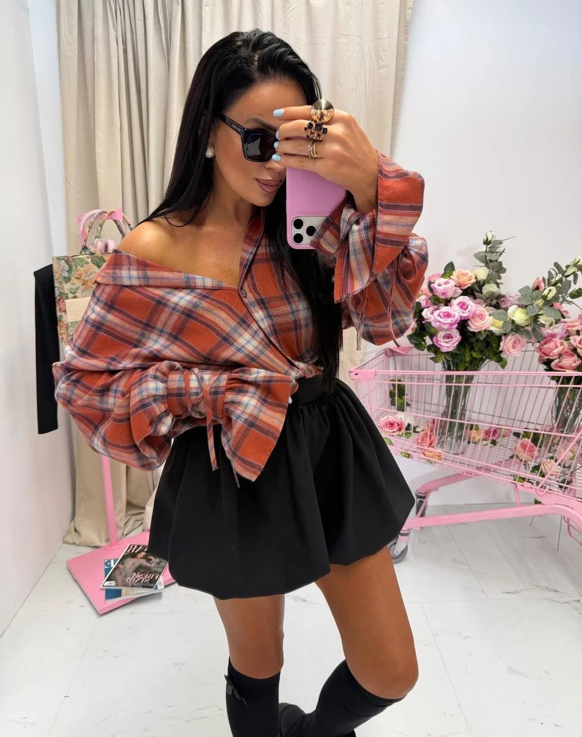 Koszula La Milla w kratę z wiązaniem na mankietach ceglasta