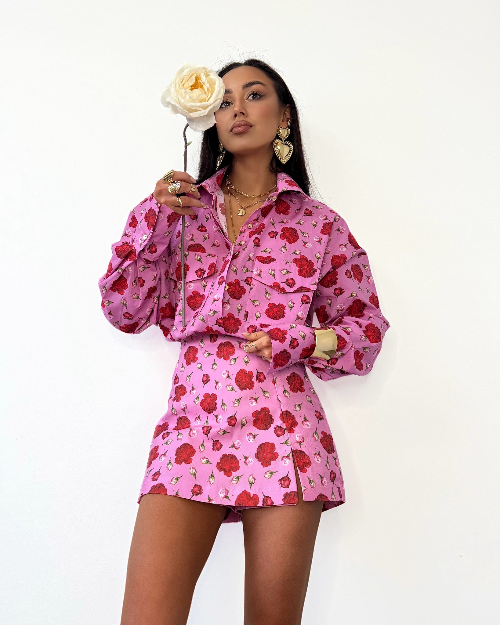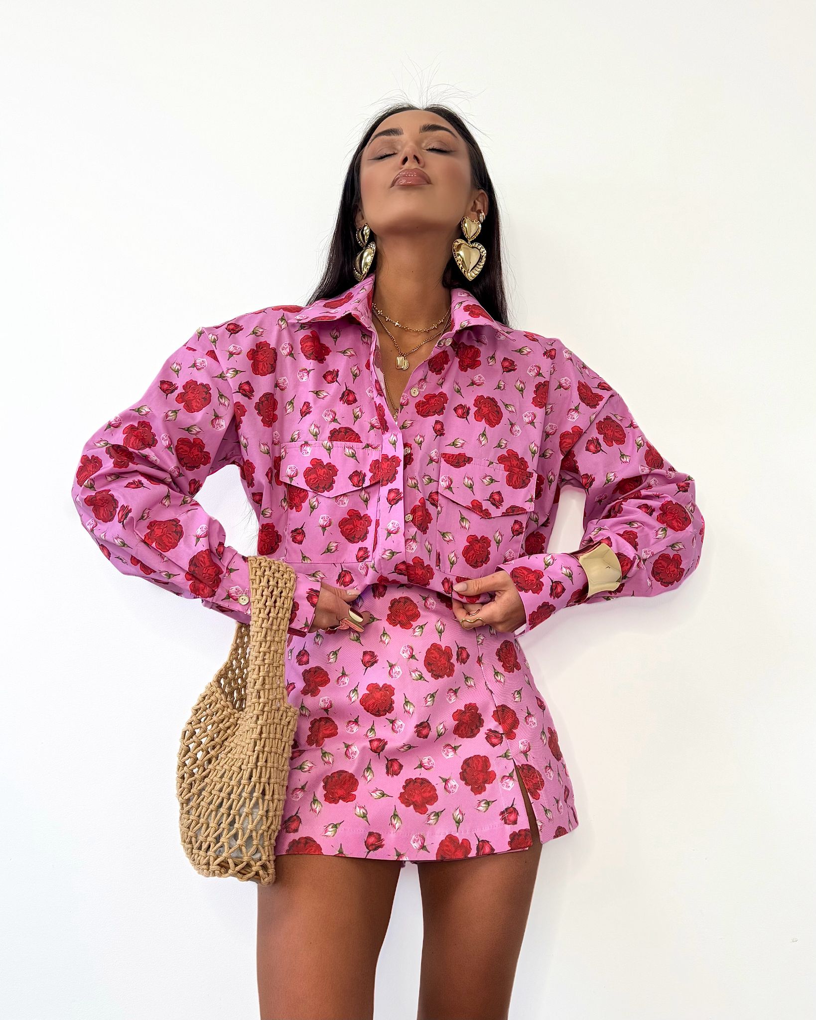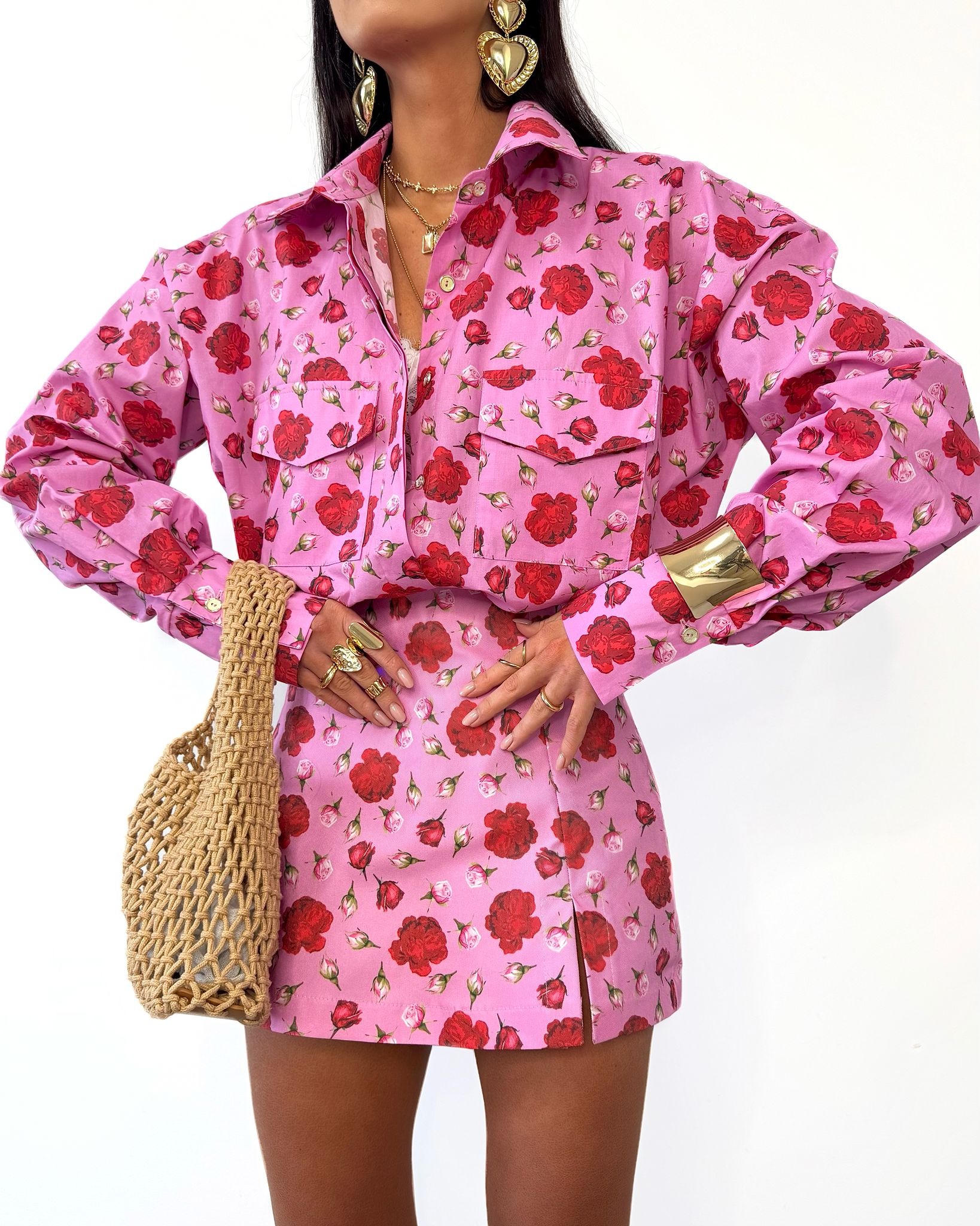 Koszula La Milla w różowo-czerwone kwiaty – elegancki fason, lekki materiał i kobiecy wzór. Idealna na każdą okazję! 🌺✨