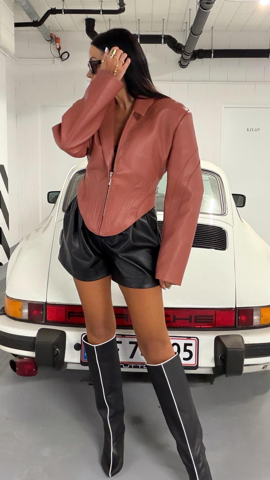 Kurtka La Milla z eko skóry gorsetowa ceglasta
