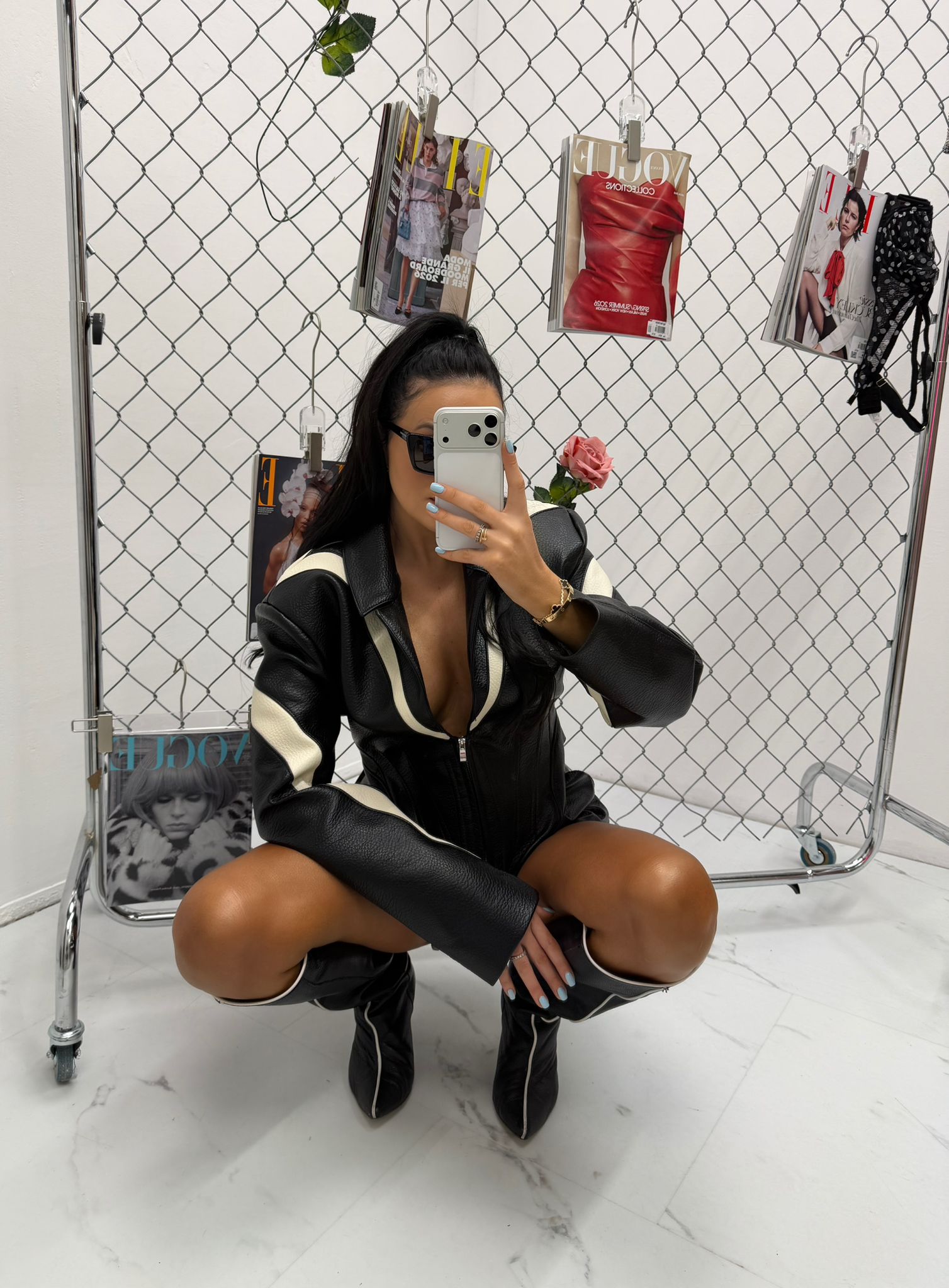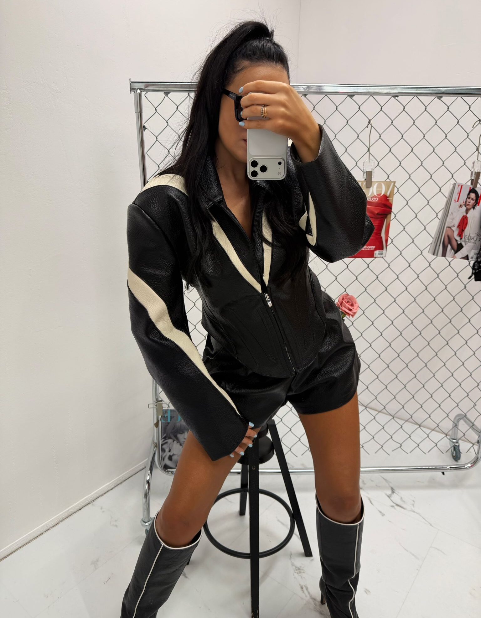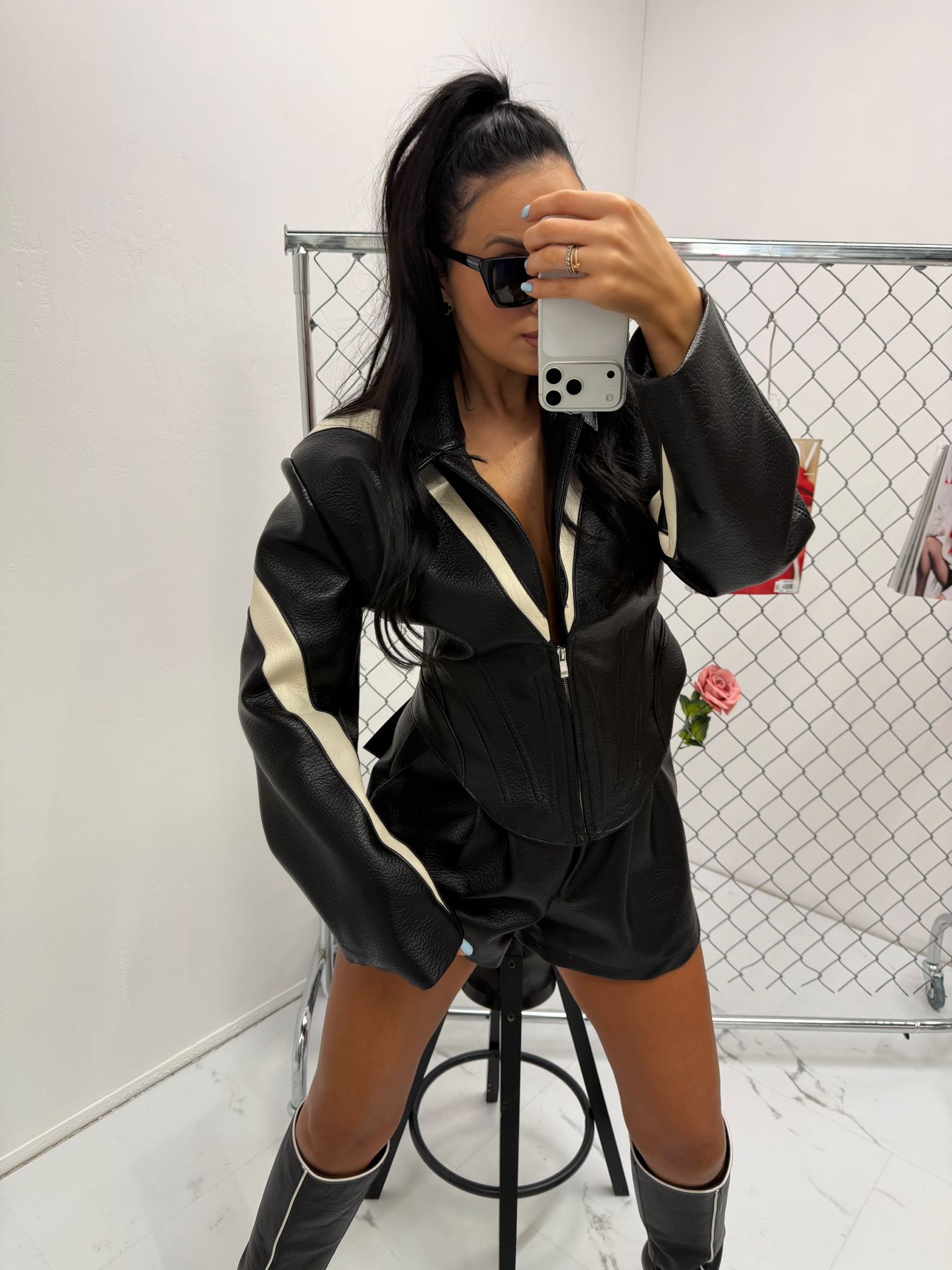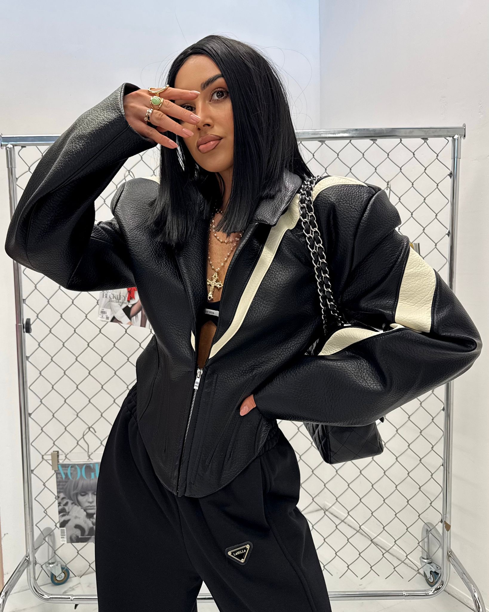 Dopasowany fason z przeszyciami optycznie wysmukla figurę, a zamek z przodu pozwala regulować głębokość dekoltu. Kurtka świetnie sprawdzi się w stylizacjach wieczorowych, imprezowych oraz streetwearowych. Możesz zestawić ją z dopasowanymi szortami, spodniami z wysokim stanem lub spódnicą, tworząc modny total look.