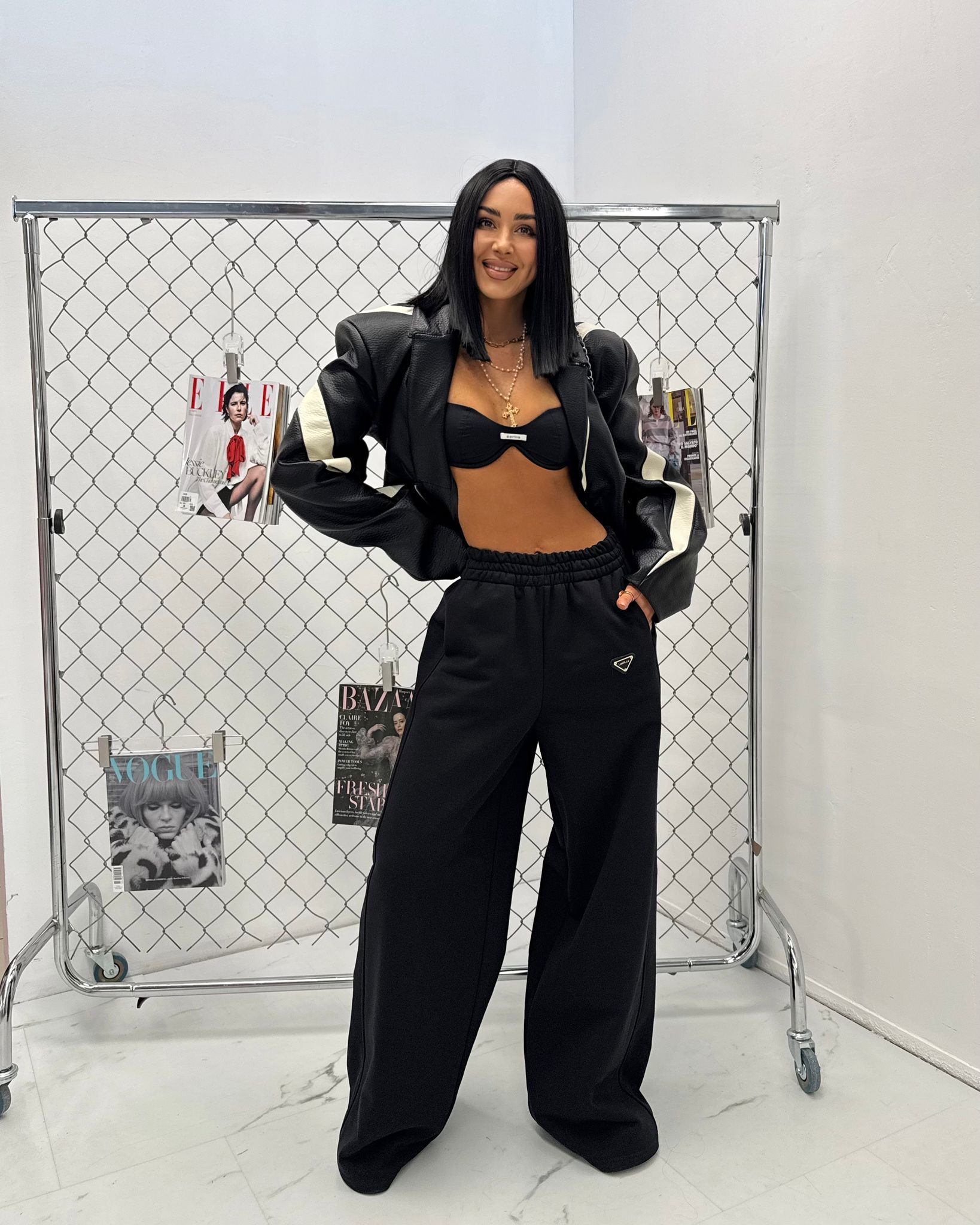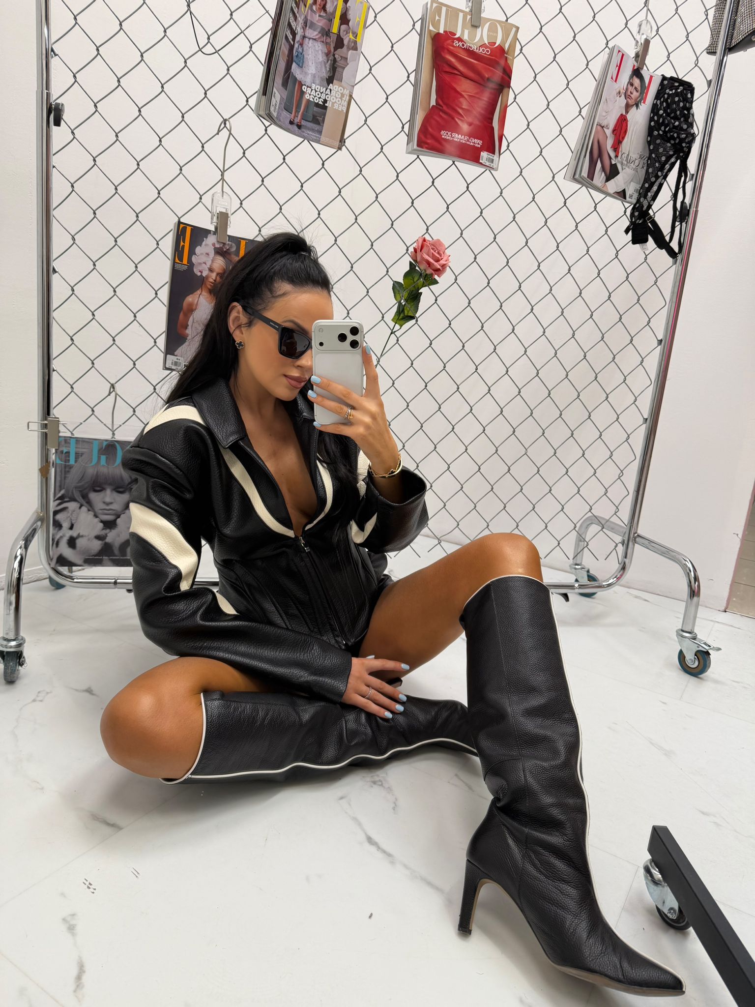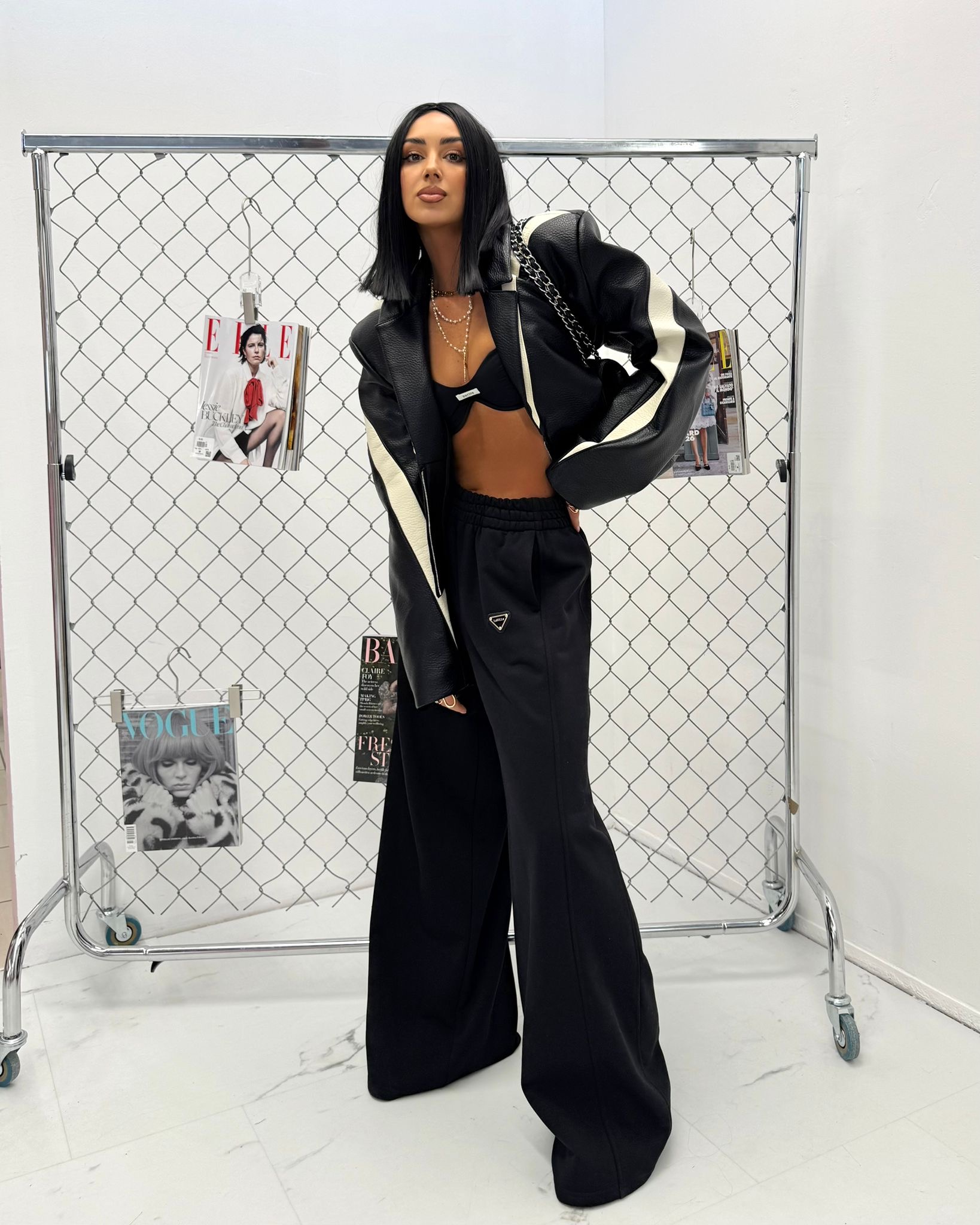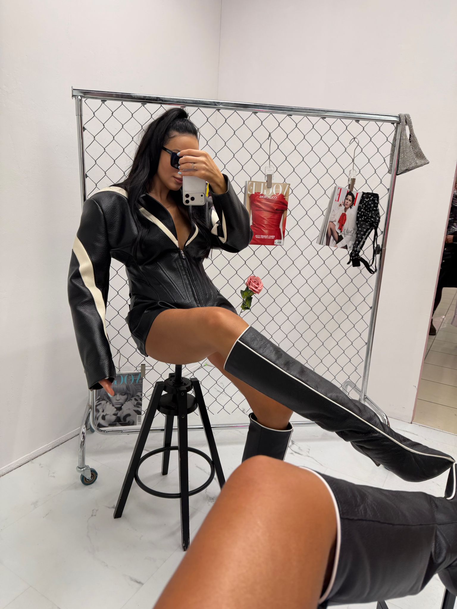 Dopasowany fason z przeszyciami optycznie wysmukla figurę, a zamek z przodu pozwala regulować głębokość dekoltu. Kurtka świetnie sprawdzi się w stylizacjach wieczorowych, imprezowych oraz streetwearowych. Możesz zestawić ją z dopasowanymi szortami, spodniami z wysokim stanem lub spódnicą, tworząc modny total look.