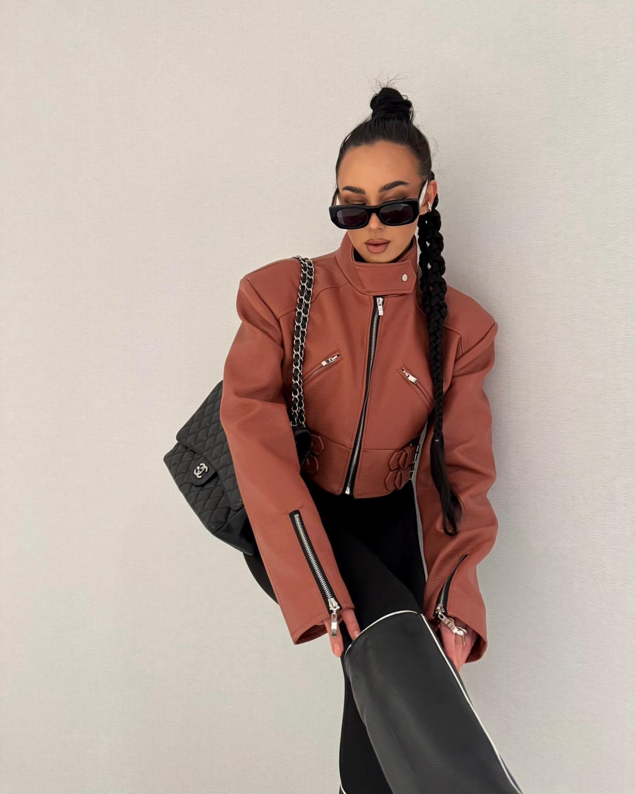 Kurtka La Milla z eko skóry w kolorze ceglanym to połączenie miejskiego stylu i elegancji w nowoczesnym wydaniu. Wykonana z wysokiej jakości, miękkiej eko skóry, doskonale dopasowuje się do sylwetki, zapewniając komfort i swobodę ruchów. Charakteru dodają jej pionowe przeszycia, zamek asymetryczny oraz efektowna stójka, która podkreśla modny, minimalistyczny design.