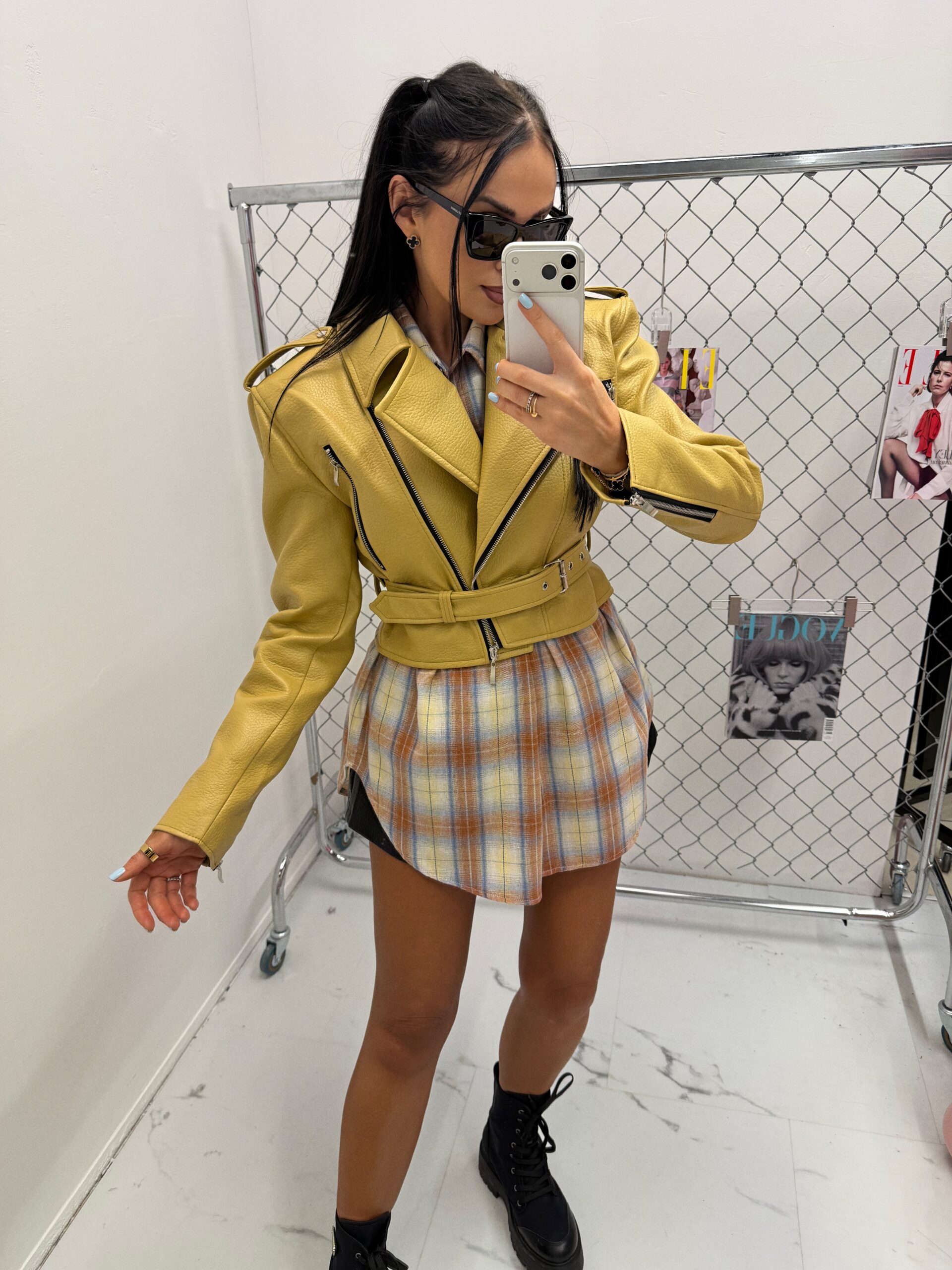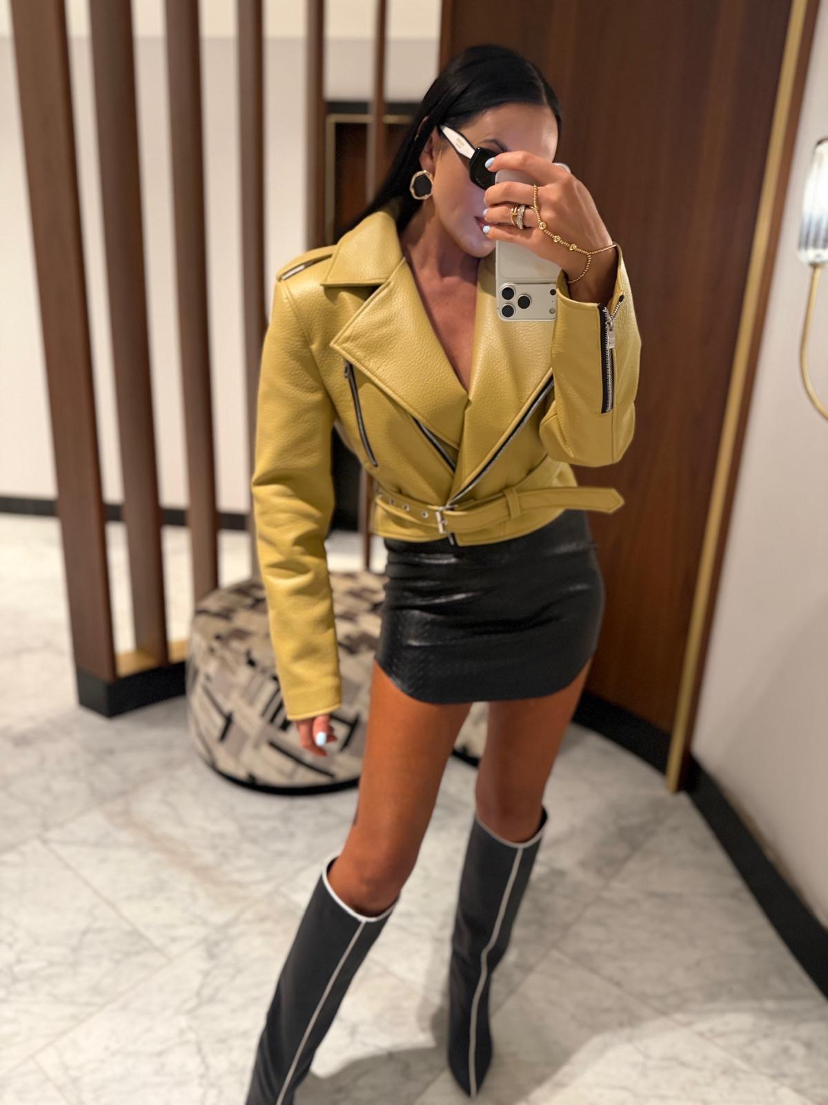 Kurtka ramoneska La Milla z eko skóry w kolorze musztardowym to modowy hit dla kobiet, które cenią styl i jakość. Wykonana z wysokogatunkowej skóry ekologicznej, zachwyca miękkością, trwałością i perfekcyjnym dopasowaniem do sylwetki. Klasyczny fason ramoneski z ukośnym zamkiem, paskiem w talii oraz wyrazistymi klapami nadaje stylizacji charakteru i ponadczasowej elegancji.