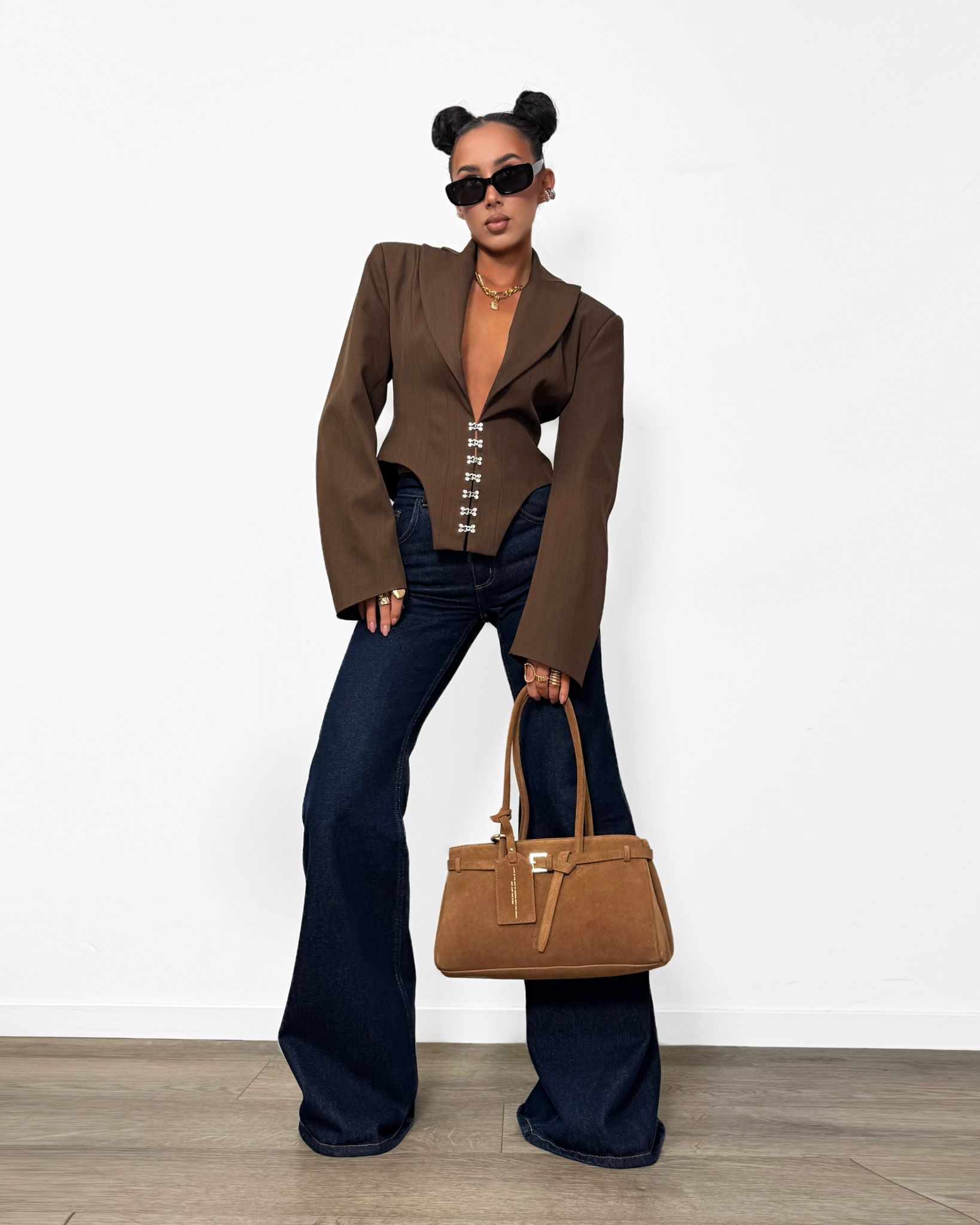 Marynarka La Milla gorsetowa z haftkami brązowa