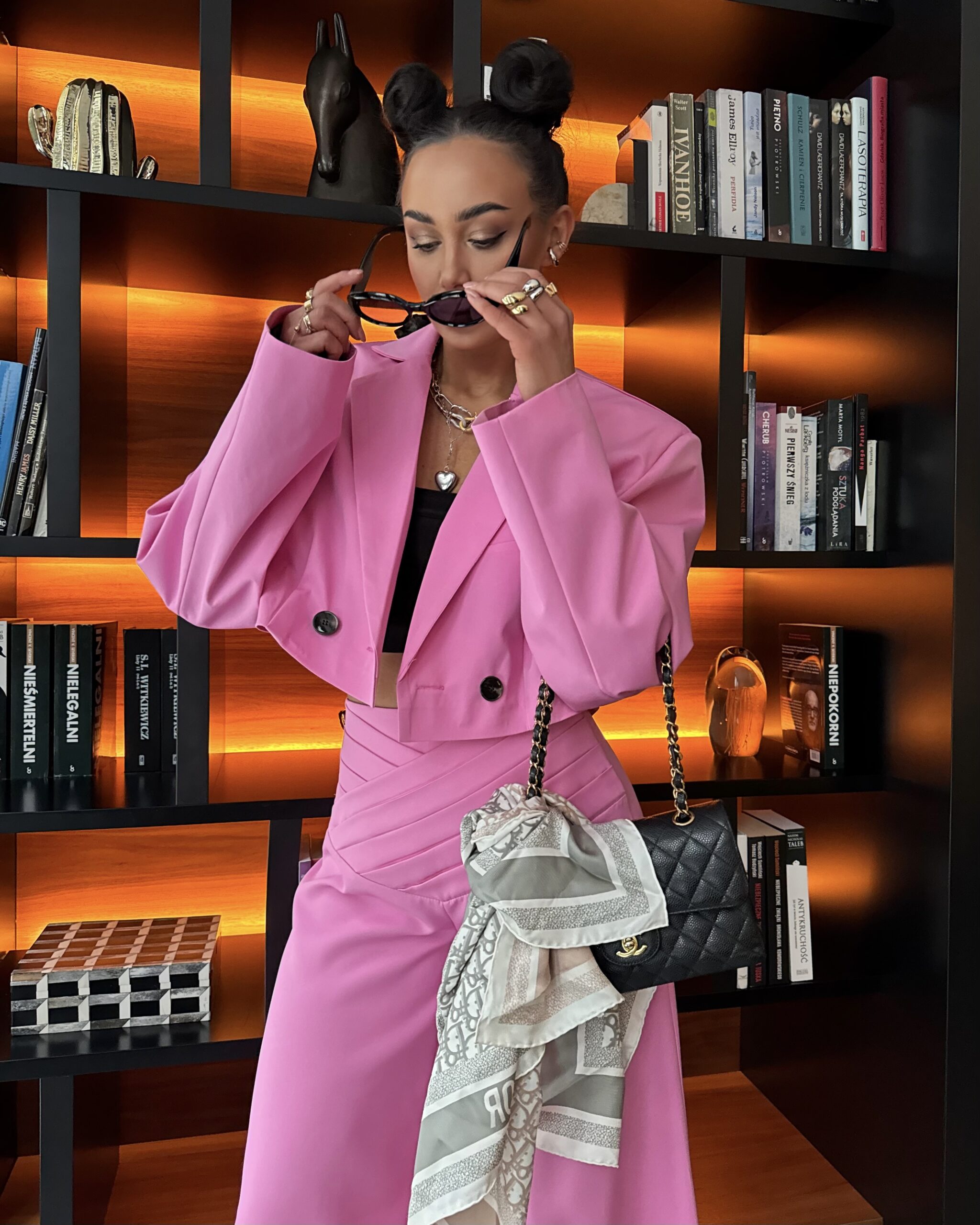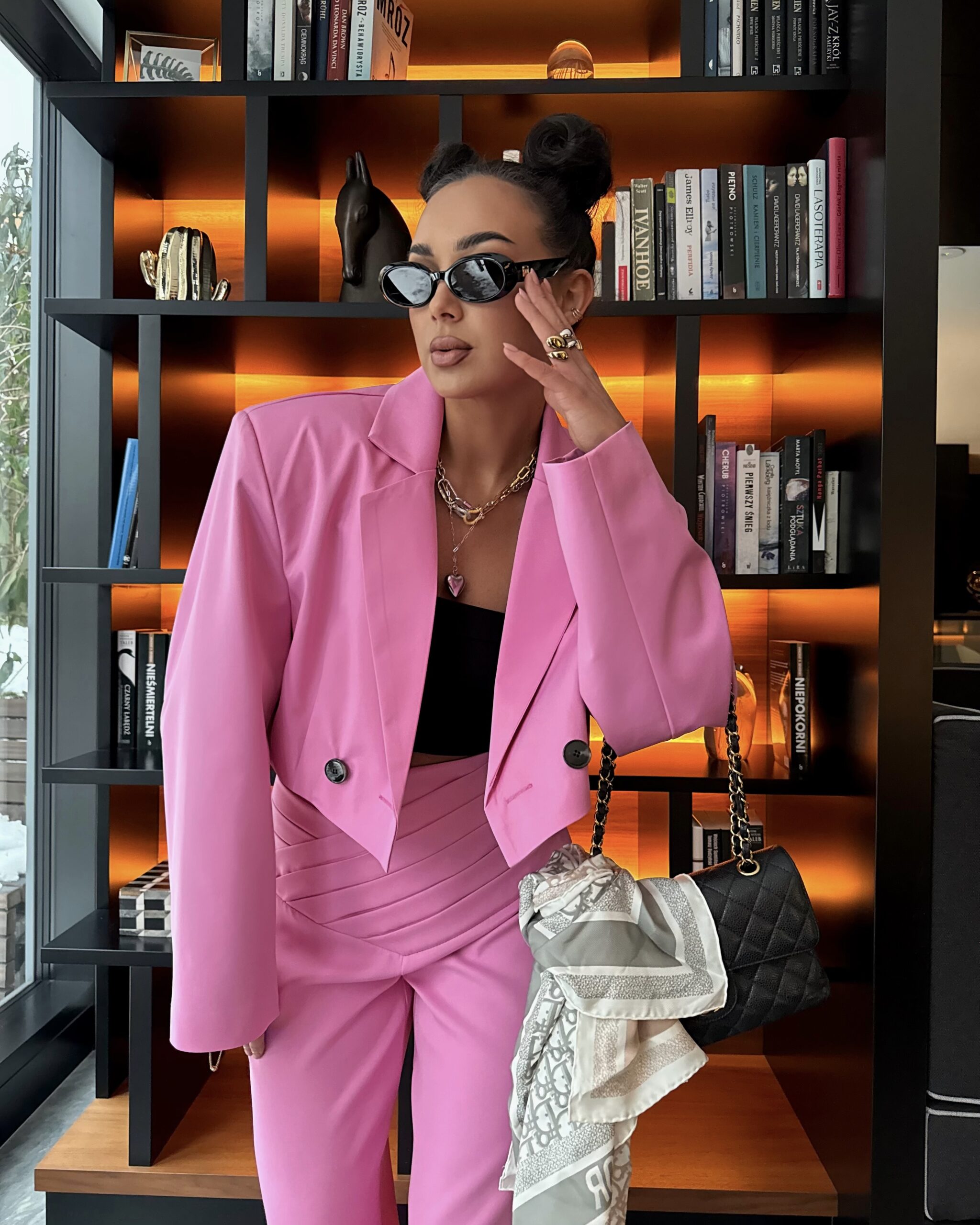 Spodnie do kompletu znajdziesz tutaj: Spodnie La Milla z drapowanym pasem różowe – Fashion Story