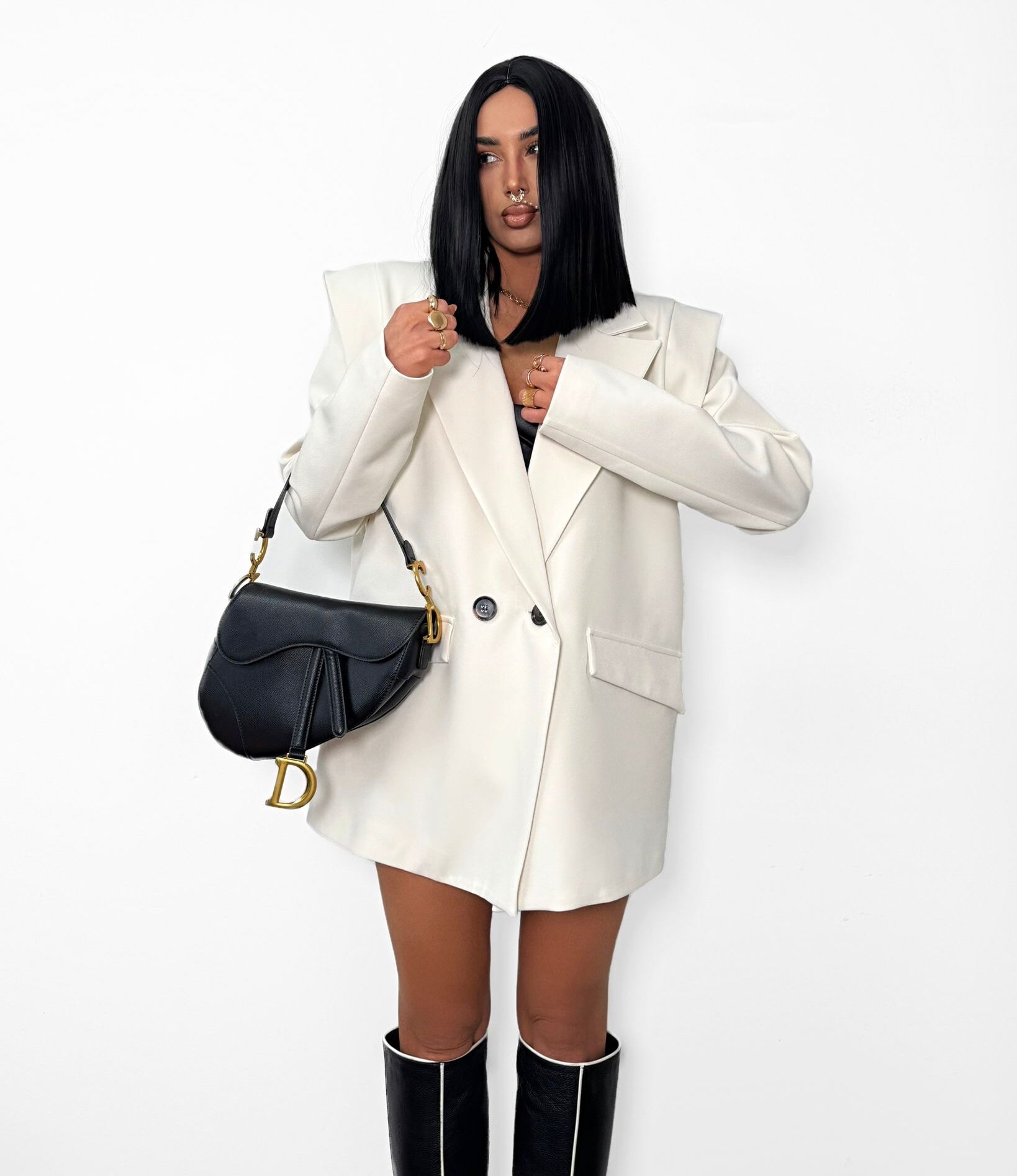 Marynarka La Milla Wigilia śmietankowa to elegancka propozycja dla kobiet, które cenią klasę, minimalizm i modny design. Ten model łączy w sobie stylową marynarkę i kobiecą sukienkę, tworząc wyjątkowy element garderoby na specjalne okazje, święta, przyjęcia i wieczorne wyjścia. Śmietankowy odcień pięknie rozświetla stylizację i pasuje do każdego typu urody, a dopasowany krój z wiązaniem w talii podkreśla sylwetkę.