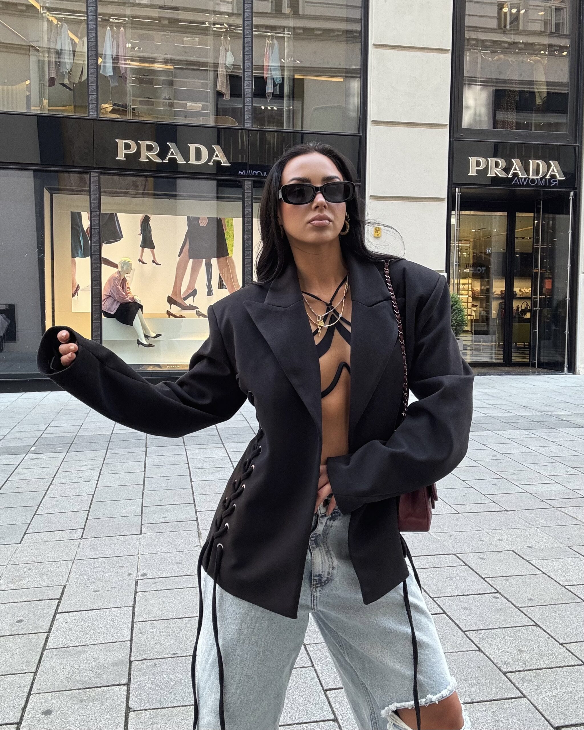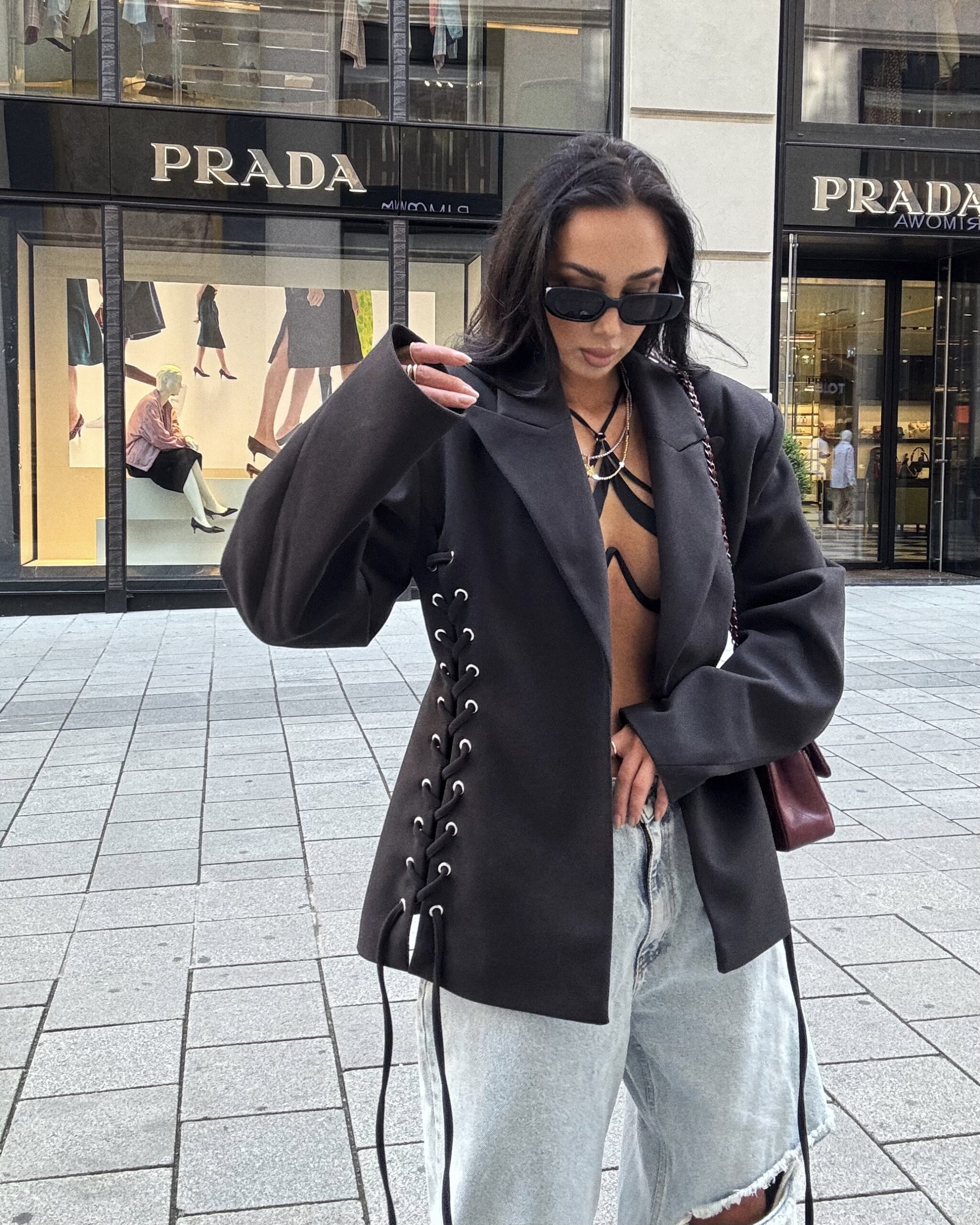 Marynarka została wykonana z wysokiej jakości materiału, co zapewnia komfort noszenia oraz perfekcyjny wygląd przez cały dzień. Uniwersalny czarny kolor sprawia, że pasuje zarówno do casualowych, jak i eleganckich stylizacji. Możesz zestawić ją z jeansami dla codziennego looku lub ze spódnicą czy cygaretkami, tworząc bardziej wyrafinowany outfit. Marynarka z grubszego materiału, można nosić jako płaszczyk.