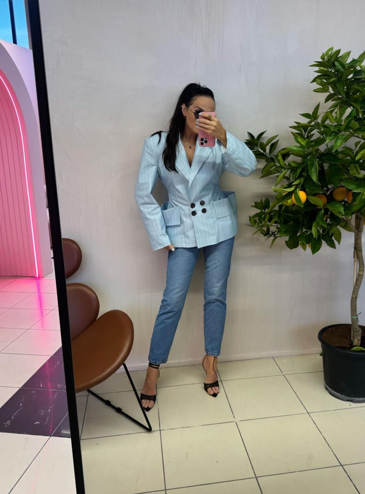 Marynarka La Milla w błękitnym odcieniu z eleganckimi paskami to ponadczasowa propozycja dla miłośniczek klasyki w nowoczesnym wydaniu. Luźny fason, duże kieszenie i podwójne zapięcie na guziki dodają jej charakteru i funkcjonalności. Idealna zarówno do biurowych stylizacji, jak i casualowych zestawów!