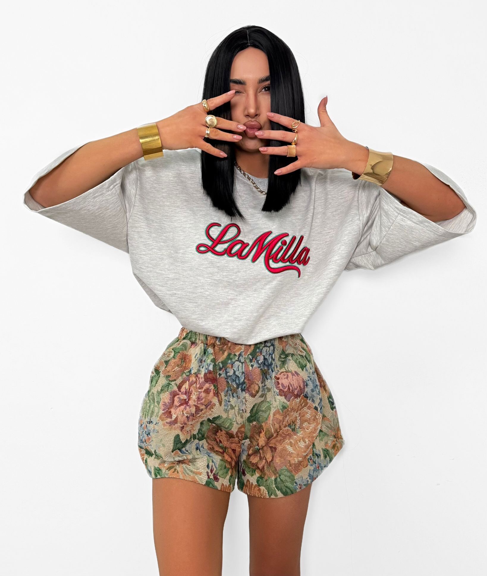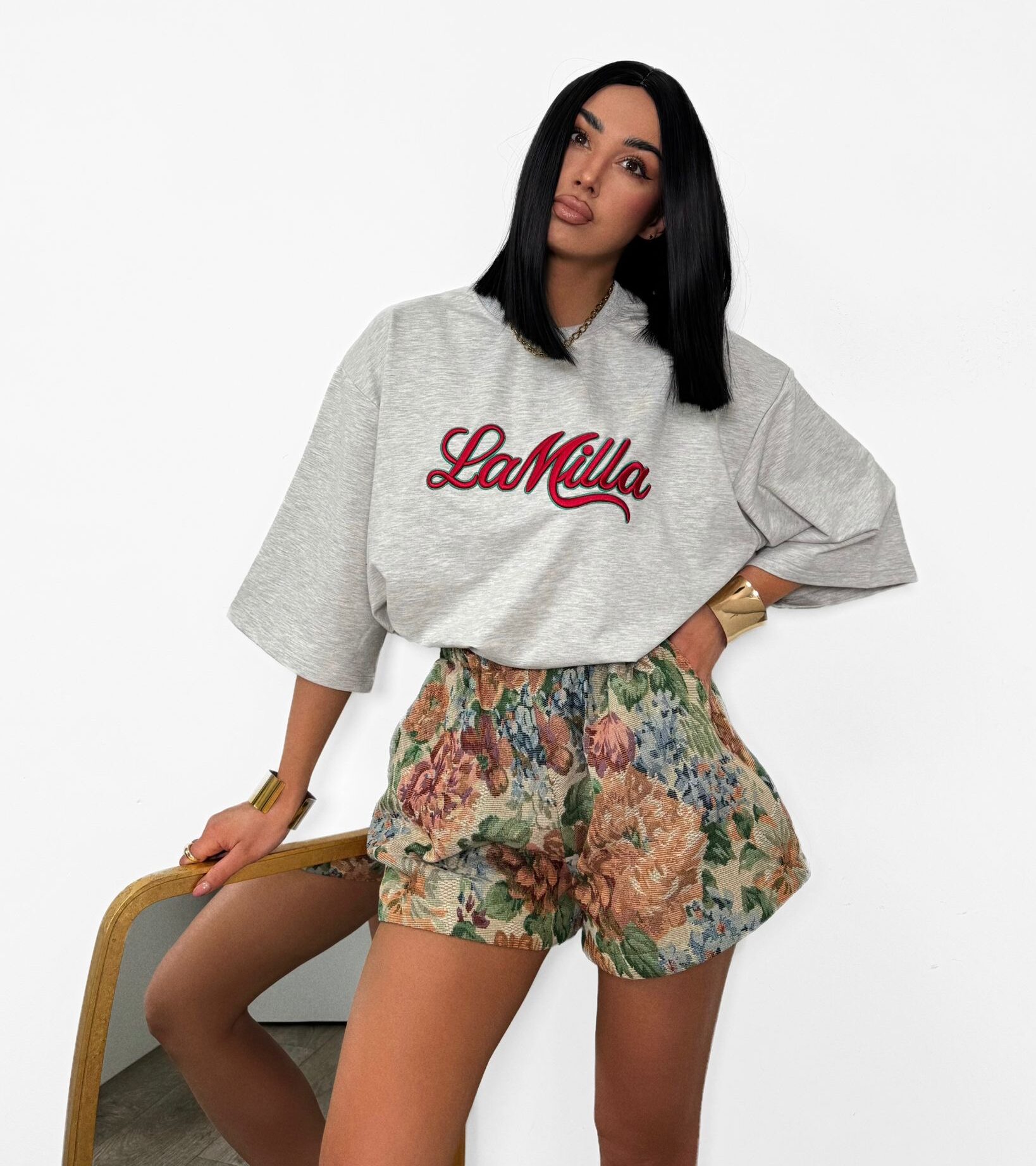 Spodenki żakardowe Rosalia La Milla to połączenie elegancji i retro uroku. Wykonane z wysokiej jakości tkaniny żakardowej, zachwycają bogatym wzorem w kwiaty w odcieniach niebieskiego, żółtego i zieleni na beżowym tle. Elastyczny pas i lekko rozszerzony krój zapewniają wygodę noszenia oraz doskonałe dopasowanie do sylwetki.
