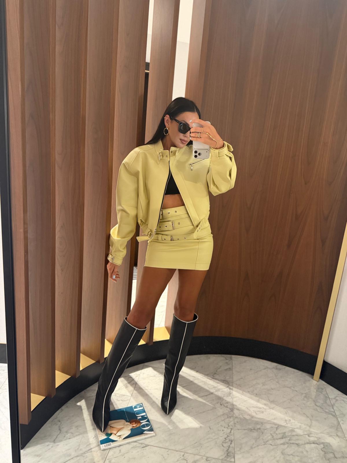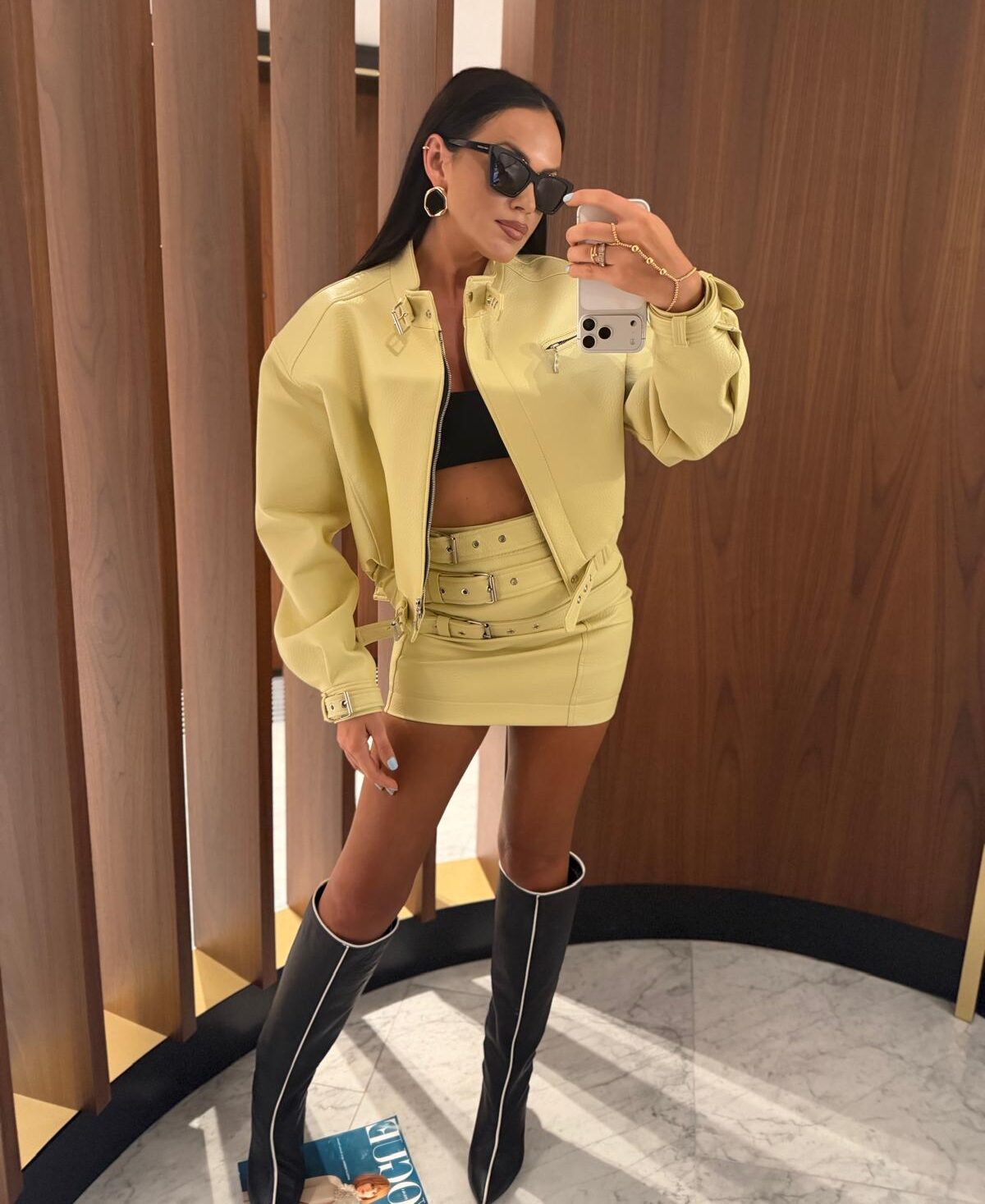 Napisz pierwszą opinię o „Spódnica mini La Milla z eko skóry klamry limonka”