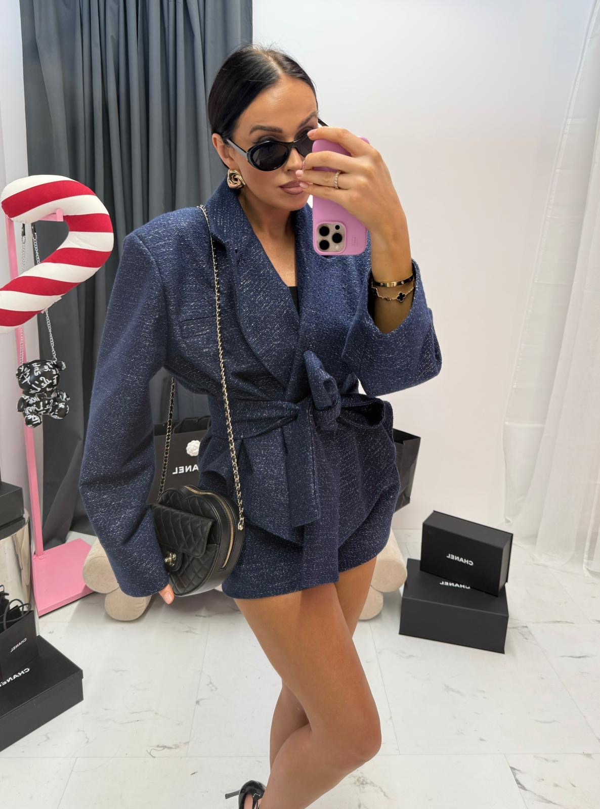 Spódnico-spodenki La Milla tulipanki granatowe ze srebrną nitką – kobiece i wygodne w jednym. Stylowy fason w formie tulipanki pięknie podkreśla sylwetkę, a subtelna srebrna nitka dodaje elegancji i wyjątkowego charakteru. Idealne na co dzień, do pracy i na specjalne okazje.