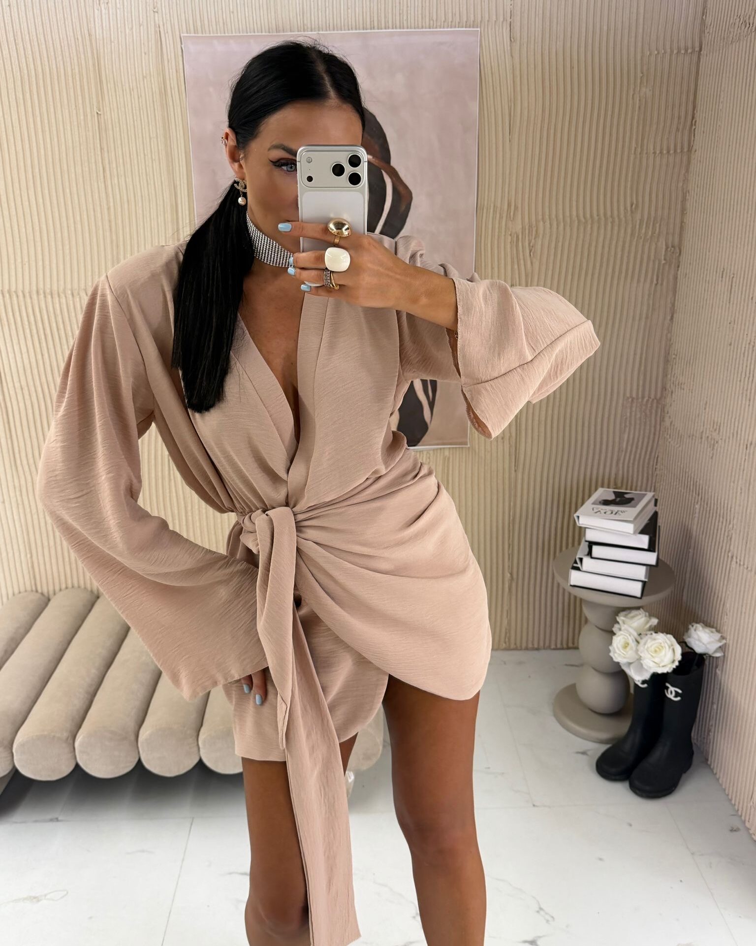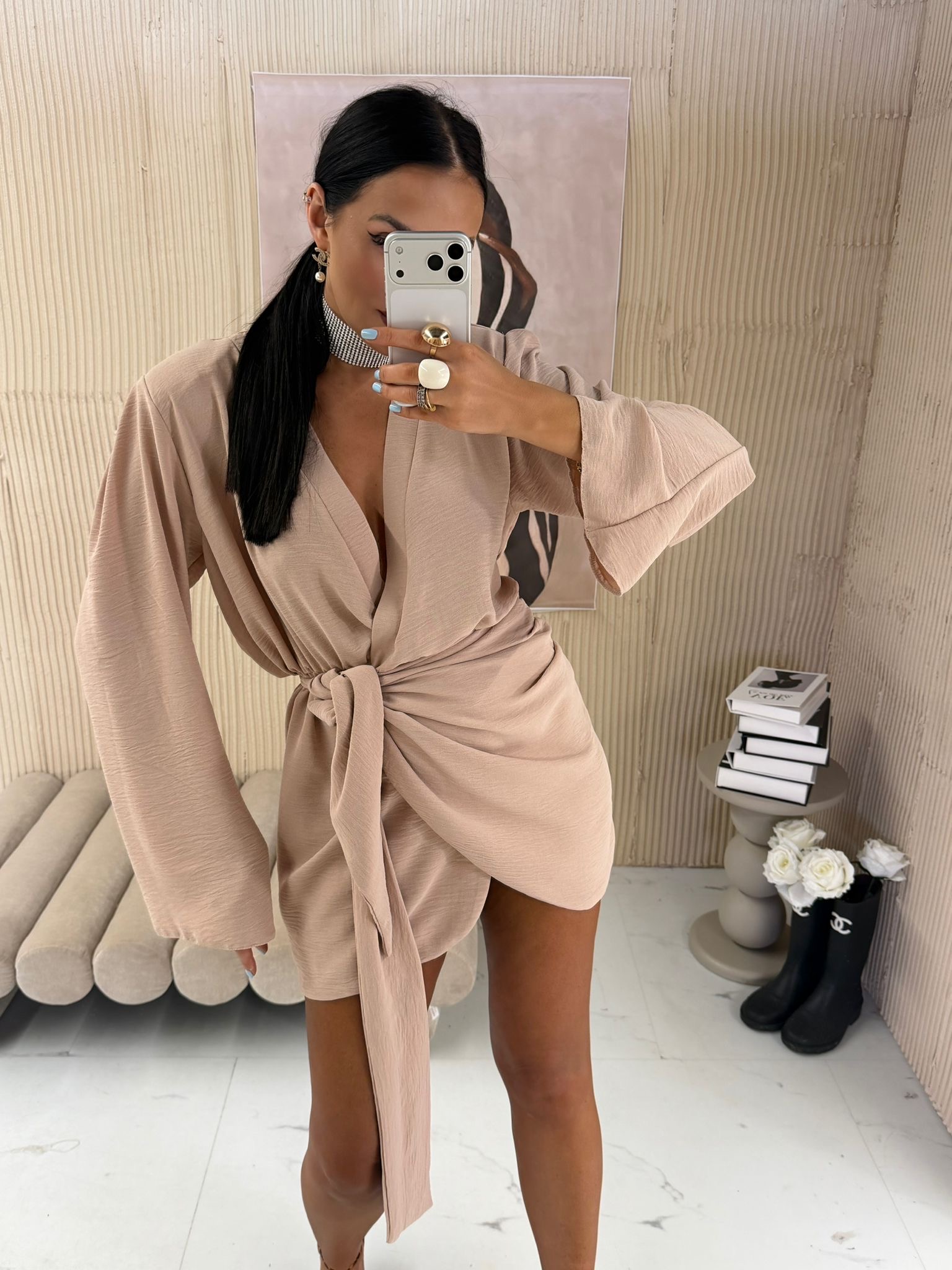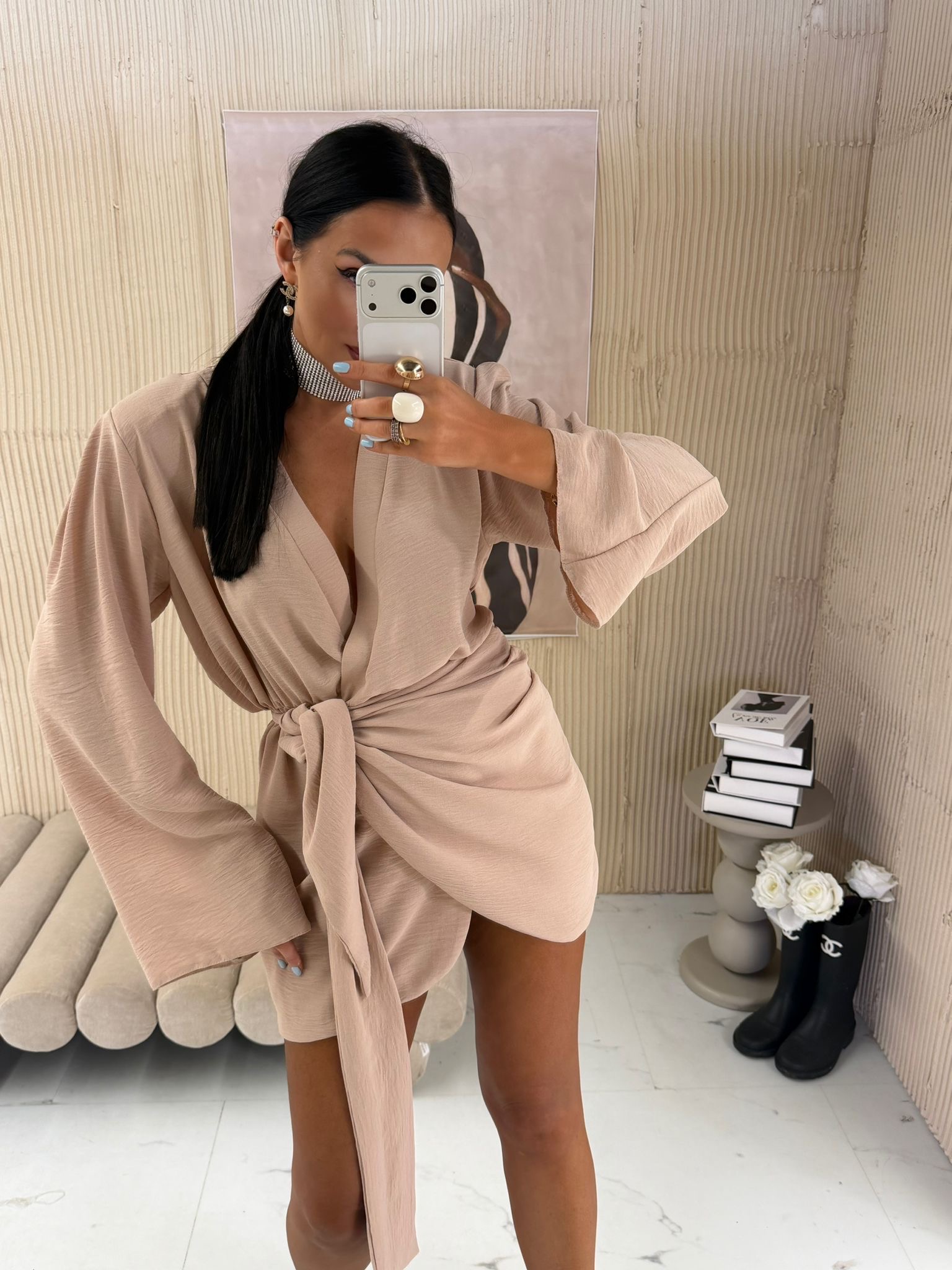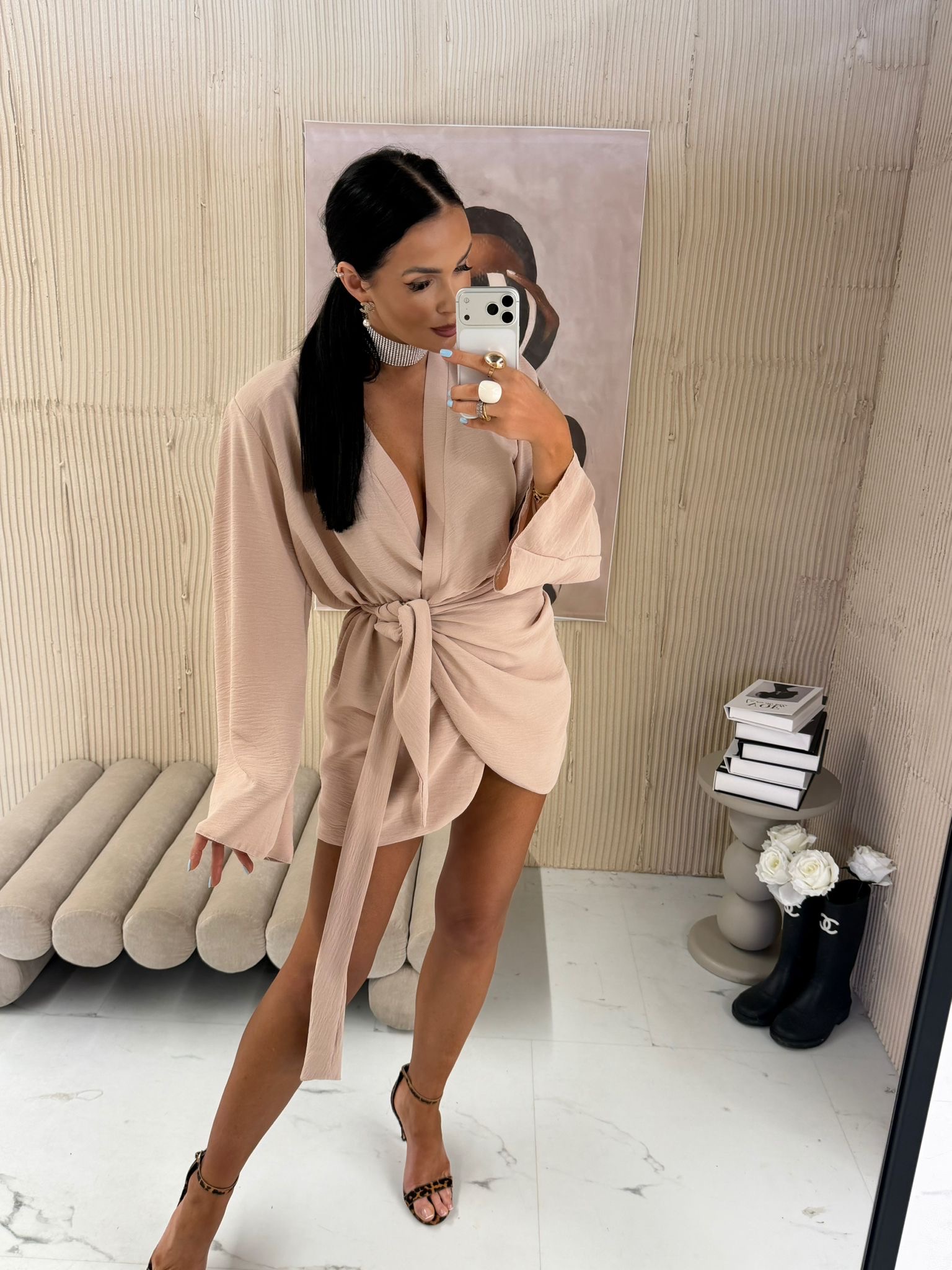 Wykonana z lejącego materiału pięknie układa się na sylwetce, a wiązanie w talii podkreśla kobiece kształty. Długie rękawy i asymetryczny krój nadają jej modowego charakteru, sprawiając, że świetnie sprawdzi się zarówno na wieczorne wyjścia, jak i stylowe spotkania w ciągu dnia.