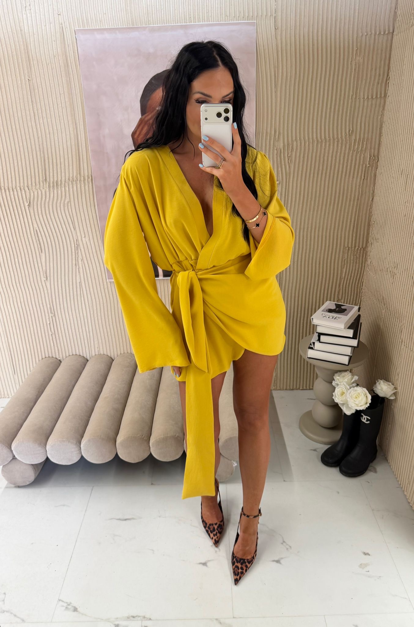 Napisz pierwszą opinię o „Sukienka kopertowa wiązana La Milla musztardowa”