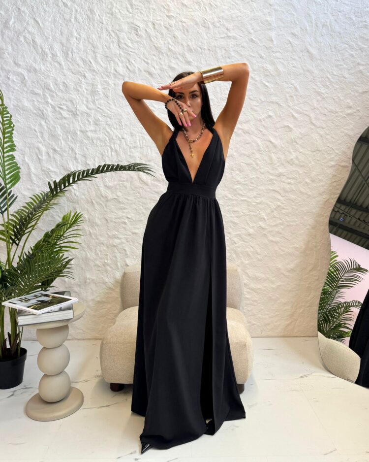 Zachwycająca sukienka maxi La Milla w klasycznym czarnym odcieniu to połączenie klasy, elegancji i zmysłowości. Fason z odkrytymi ramionami i głębokim dekoltem w kształcie litery V pięknie podkreśla sylwetkę, a delikatnie rozkloszowany dół dodaje lekkości i swobody.