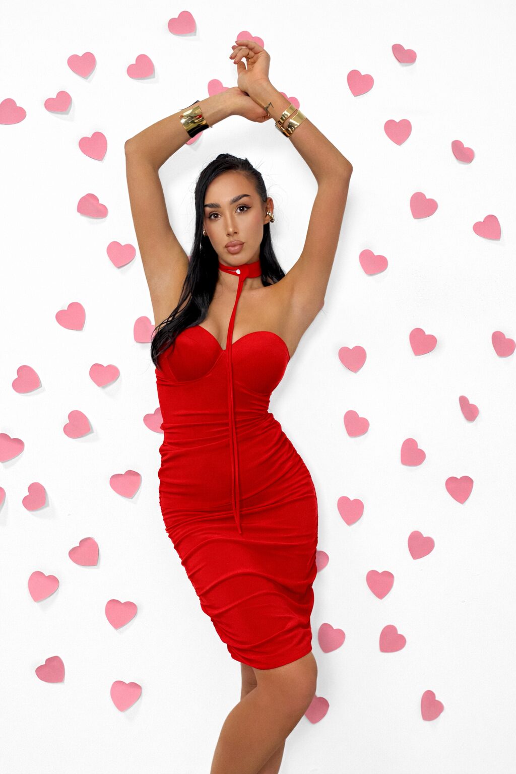 Sukienka midi gorsetowa La Milla czerwona to synonim klasy, kobiecości i ponadczasowej elegancji. Model z dopasowaną górą o gorsetowym kroju pięknie podkreśla biust i talię, modelując sylwetkę. Długość midi nadaje sukience szyku i sprawia, że idealnie sprawdzi się na wieczorne wyjścia, przyjęcia, randki czy wyjątkowe okazje. Wysokiej jakości materiał zapewnia komfort noszenia oraz doskonałe dopasowanie do ciała.